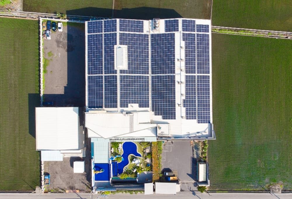 the application of the solar panels on top of the plants to reduce the energy consumption and carbon emission.